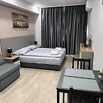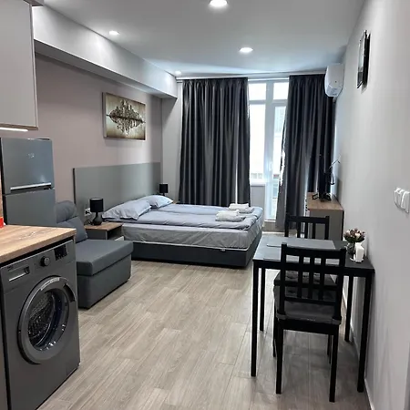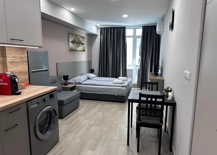 Lägenheten Студио Комфорт Бургас Център med 1 sovrum ligger i distriktet Burgas Center, cirka 5 minuters gångavstånd från Alyosha. Den 30 m² stora lägenheten erbjuder utsikt över innergården och en terrass.